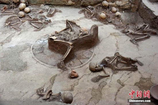 图为约4000年前突发地震惨烈场面遗存。母亲护子死亡